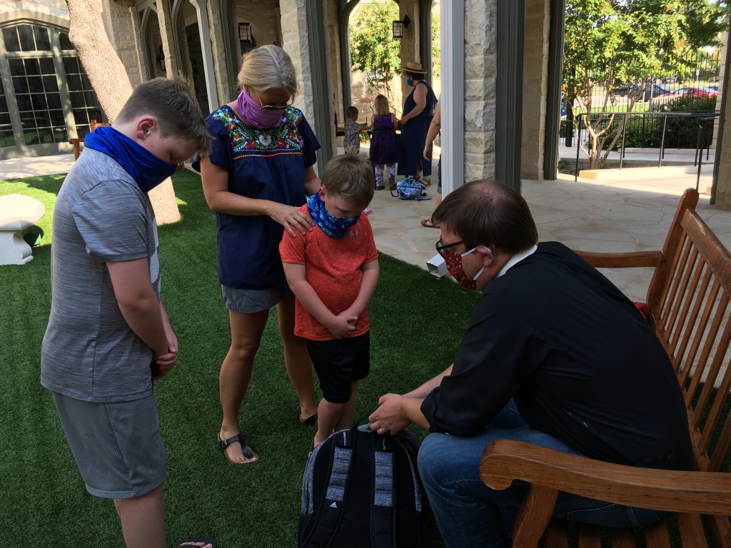 “Are y’all ready to pray together?” David Romanik, rector at Heavenly Rest, asked as children and their parents filed through the church courtyard to receive a blessing.