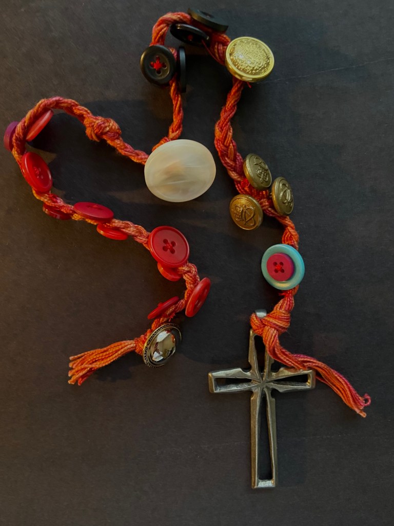 Now, ten days after Susan spoke life to me through her description of a tangible practice of devotion, I can report that I am well…or at least better than I was the night at dance class when she offered me this gift. I have a practice and an actual handmade rosary from objects and materials that I treasure. Thanks, friend.