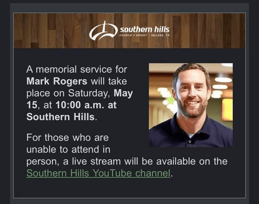 The service will begin at 10 a.m. at Southern Hills Church of Christ, where Rogers was a member. The service will be live-streamed on the church’s YouTube channel. Rogers was West Central Texas Market President of Big Brothers Big Sisters Lone Star.