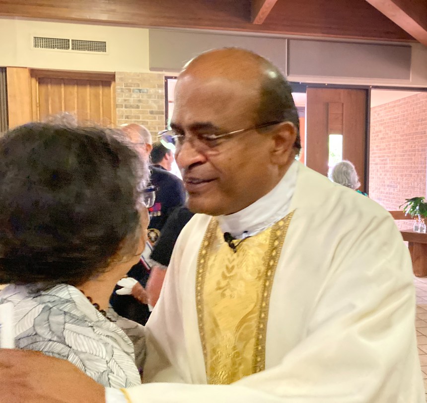 Udayar is replacing a man much beloved at Holy Family and beyond. “Father Fred,” received a rousing standing ovation at the conclusion of his last service as lead priest at Holy Family on June 27. But he isn’t going far.