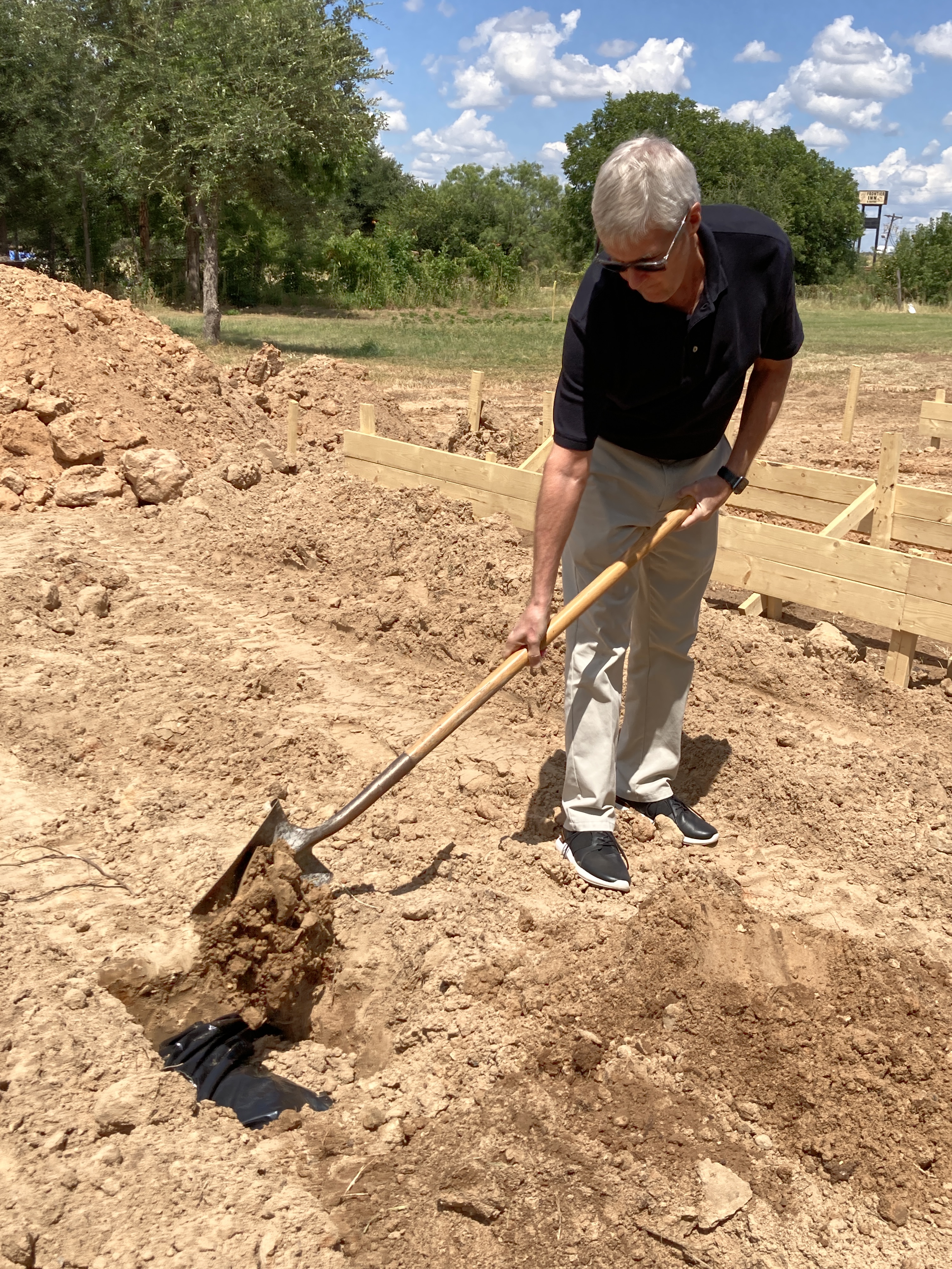 Despite the blistering heat, there was much rejoicing Sunday, Aug. 15, when the Rev. Jim Wright, pastor of First United Methodist Church in Throckmorton, quoted those words from Psalm 118: 24. The scripture served as a greeting for the “Blessing a Foundation” ceremony at the site of the latest tiny house being built by Houses for Healing, a local ministry started by Brian Massey.