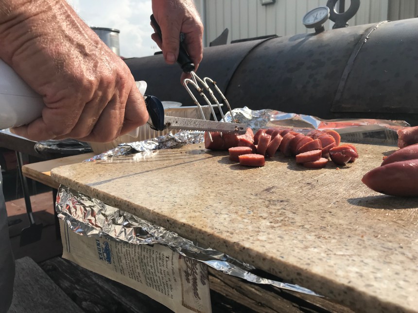 They have many people from Pioneer Drive to thank, including Jay and Wilma Barbian, the primary cooks involved. Jay fires up his smoker to cook brisket and sausage, and Wilma provides most of the trimmings.