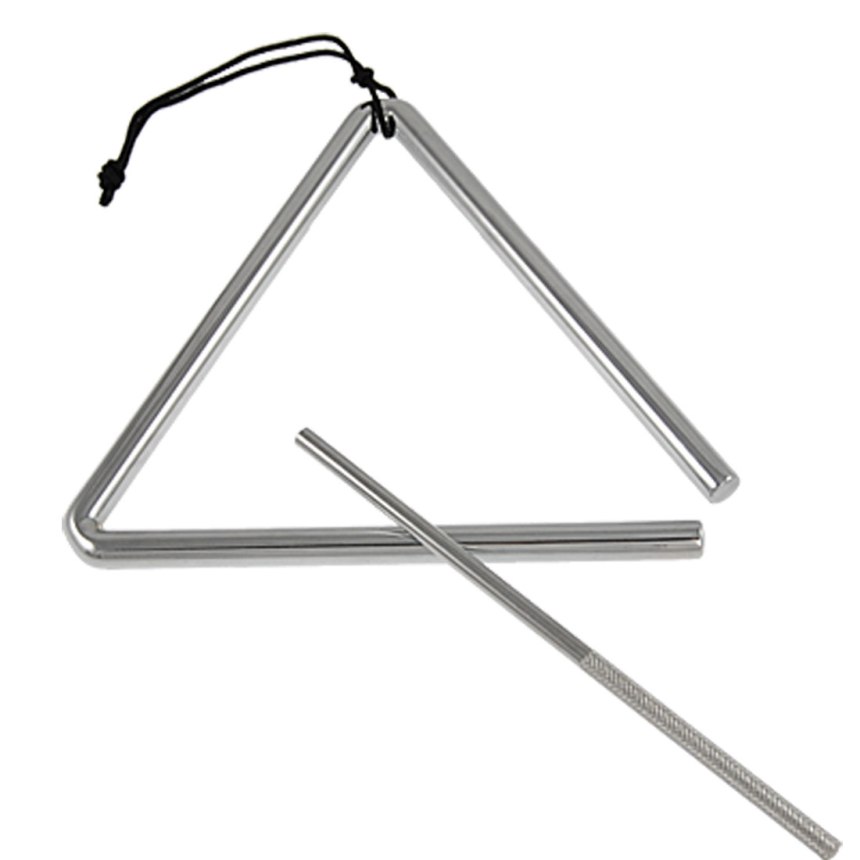 As often happens, remnants of our childhood continue into our adult lives and sometimes take on new meanings or importance. A simple bar of metal (usually steel) is bent into a triangle shape, not closed at one end. Suspended from a loop of thread or cord, one strikes it with a beater of similarly constructed metal. If the triangle were closed, when struck it would make a single pitch. Because it is open, however, when struck there are overtones or harmonics. Not limited to a basic stroke, percussionists can add rolls and other variations requested by the music score.