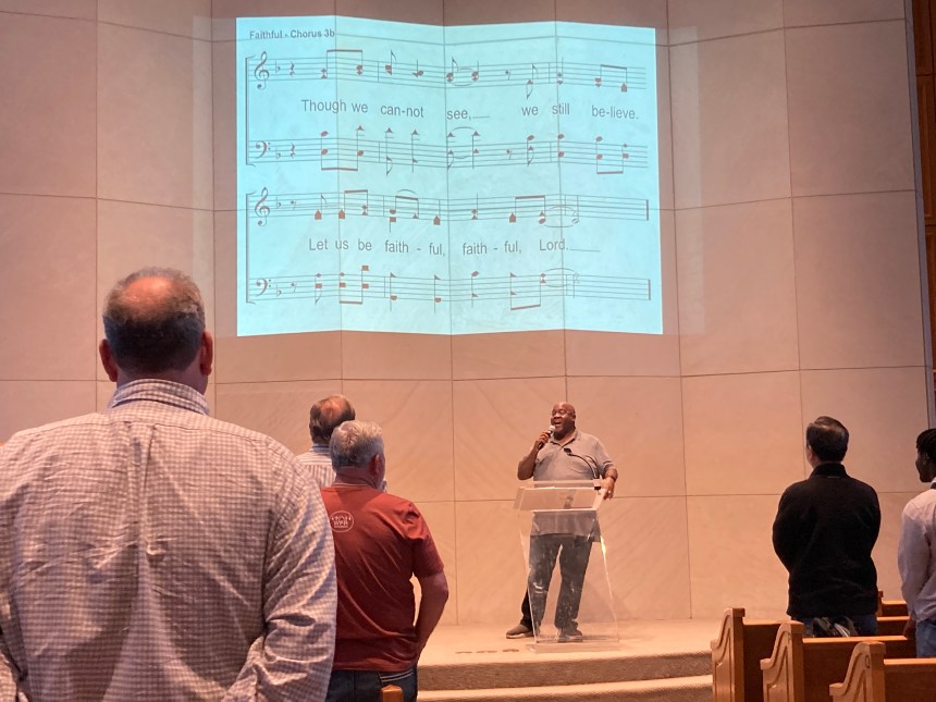 The only thing not “old” about it was the projection of the hymn lyrics onto a wall of the Chapel on Hill. Not that the audience, or congregation, needed a prompt. They all knew the hymns well–old favorites like “Faithful,” “Shout Hallelujah,” “Firm Foundation,” and “Cornerstone.” The sing-along ended with the rousing, “Our God, He is Alive,” and its signature line, “He Is Our God, the Great I Am.”