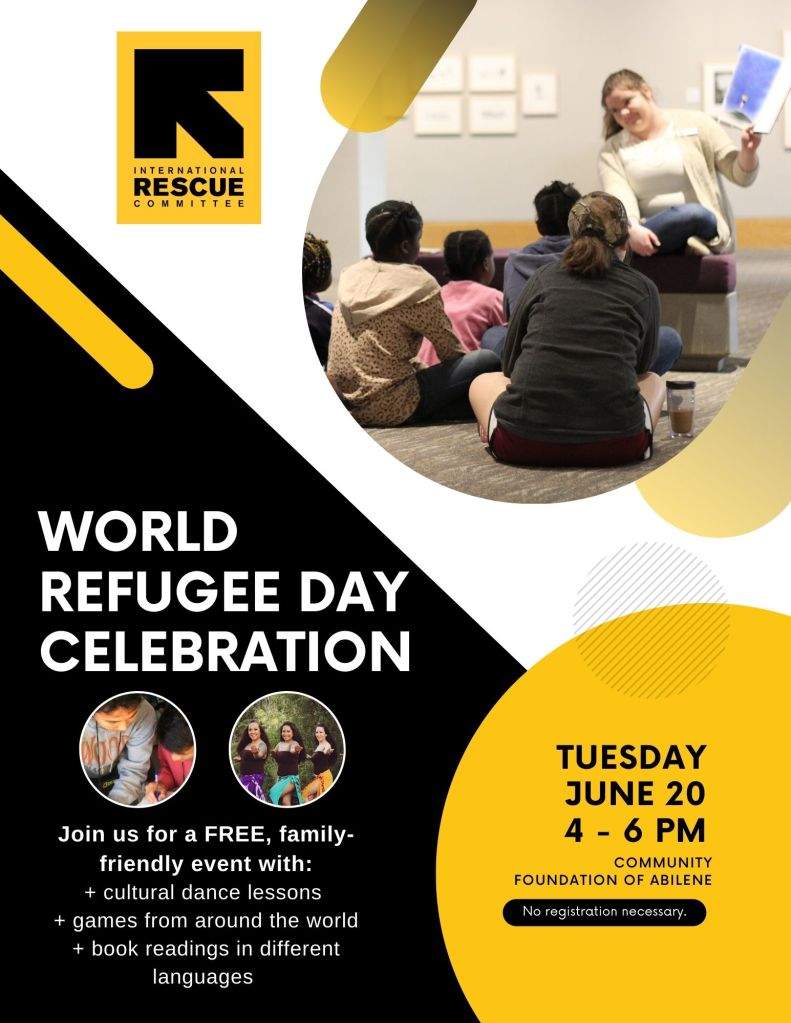 “This day honors the strength and courage of people who have been forced to flee their home country,” said Carah Barbarick, community integration manager for the International Rescue Committee in Abilene.