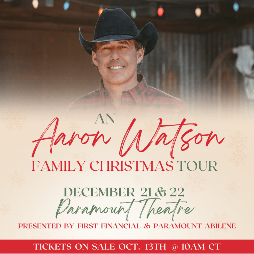 Back due to popular demand, Abilene’s own Aaron Watson is returning to his hometown for, not one, but TWO one-of-a-kind Christmas shows! Hear Christmas favorites, new and old, and some of Aaron’s biggest hits on the Paramount stage.