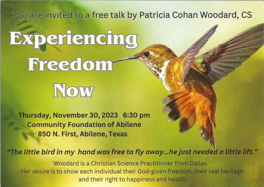 For more information, go to christianscienceabilene.com or check out the “Christian Science in Abilene” Facebook page.