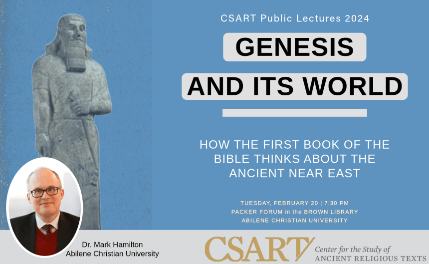 A public lecture on the book of Genesis is set for Tuesday, Feb. 20, at Abilene Christian University.