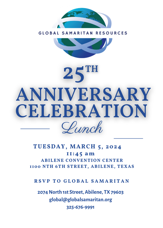 Global Samaritan Resources will celebrate its 25th year with a luncheon on Tuesday, March 5.