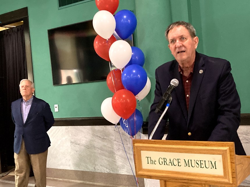 The Feb. 27 rally at the Grace Museum was held on the same day that Abbott was in town to attend a rally for Case at the 201 Mesquite Event Center. At Lambert’s rally, he touted his connections to the district, which consists of Callahan, Jones, Nolan, and Taylor counties, and contrasted those to Case. He is a product of the Abilene public schools and is a graduate of Abilene Christian University. Lambert noted that he grew up shopping at locally owned department stores like Minter’s and Grissom’s.