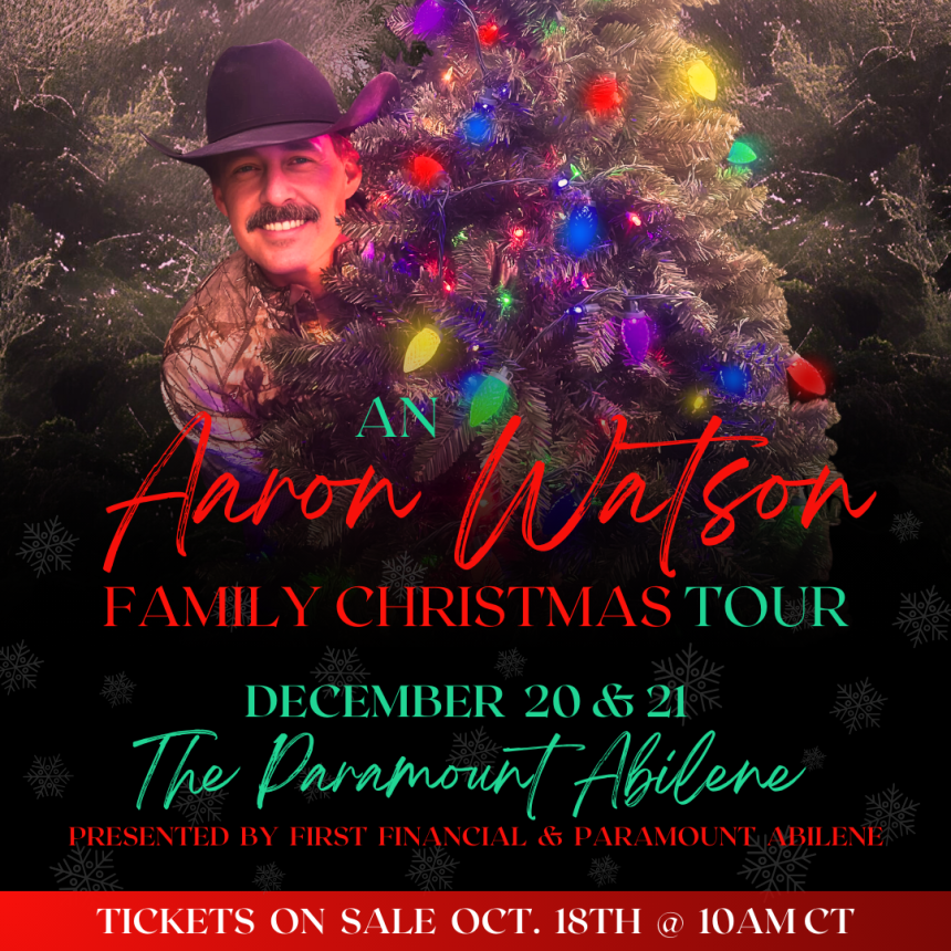 Tickets are on sale for two performances of An Aaron Watson Family Christmas at the Paramount Theater Dec. 20 and 21.