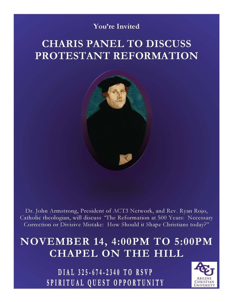 The public is invited to a panel discussion on the Protestant Reformation on Nov. 14.