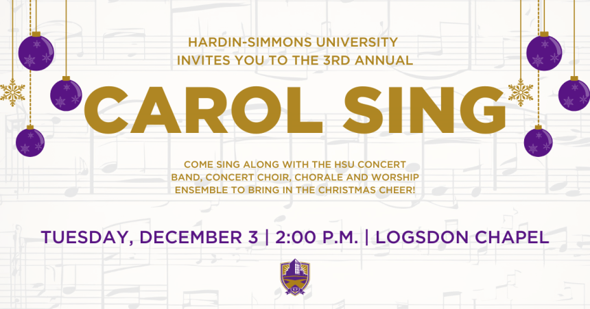 Everyone who loves singing Christmas carols is invited to Logsdon Chapel on the campus of Hardin-Simmons University at 2 p.m. Tuesday, Dec. 3.