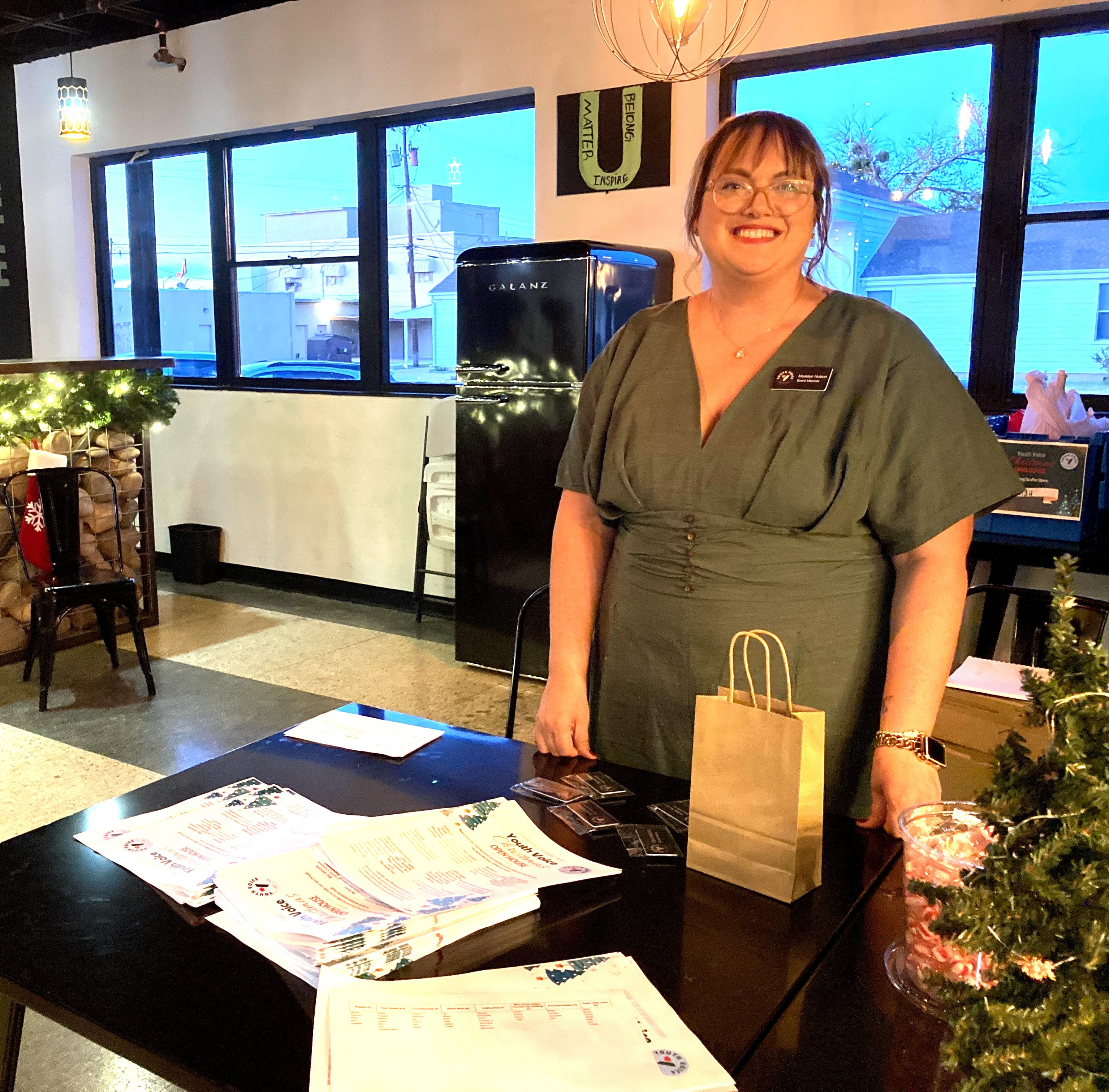 Youth Voice board member Madelyn Hutson distributes information during open house in December.