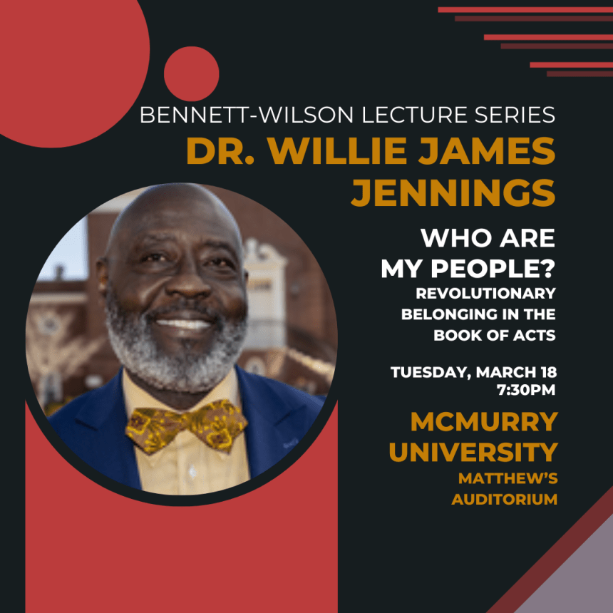 Dr. Willie James Jennings, a theology professor at Yale Divinity School, will be guest speaker for the Bennett-Wilson Lectures at McMurry University on Tuesday, March 18.