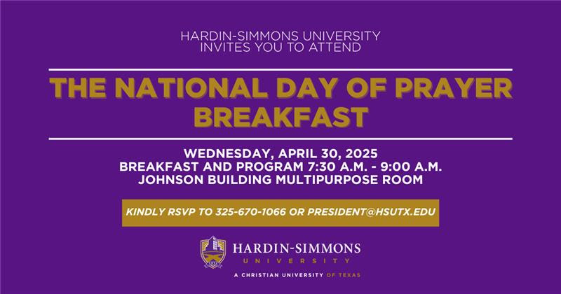 And, a breakfast that is free and open to the public will be held on Wednesday, April 30, at Hardin-Simmons University.