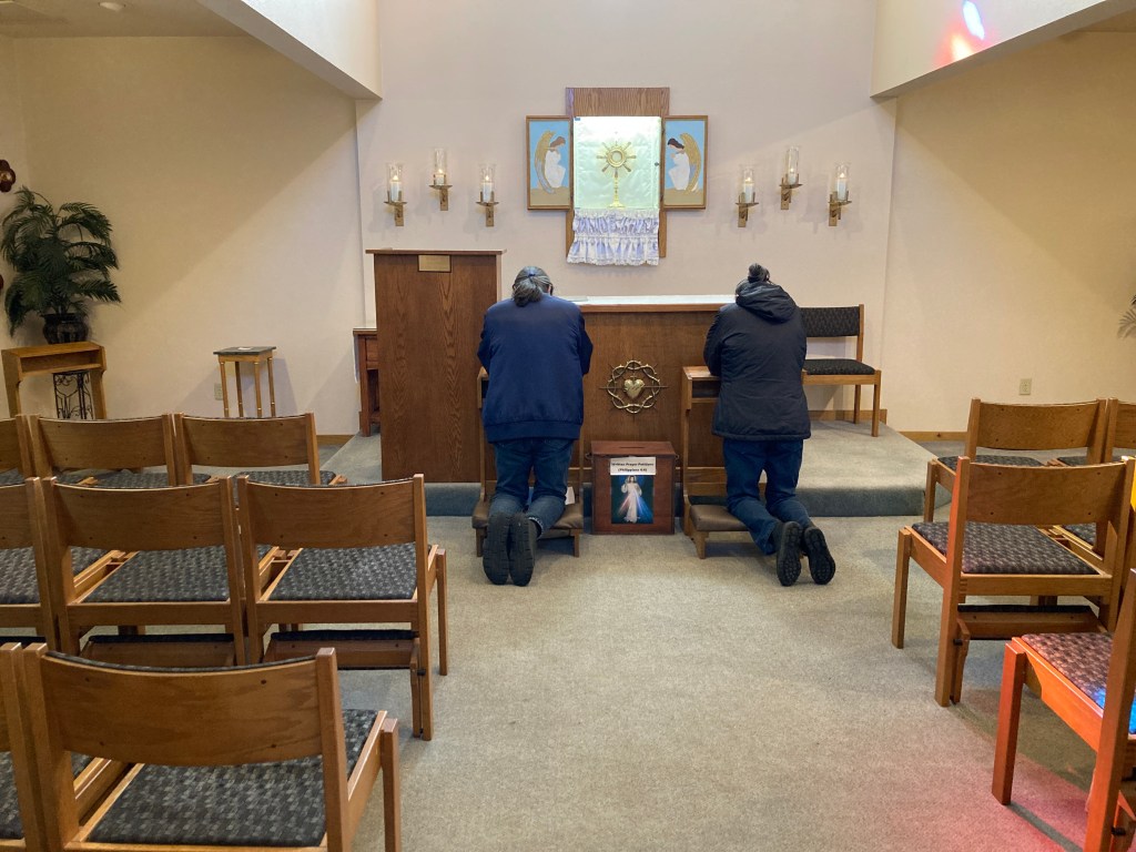 Views of Perpetual Adoration Chapel next to Sacred Heart Catholic Church.