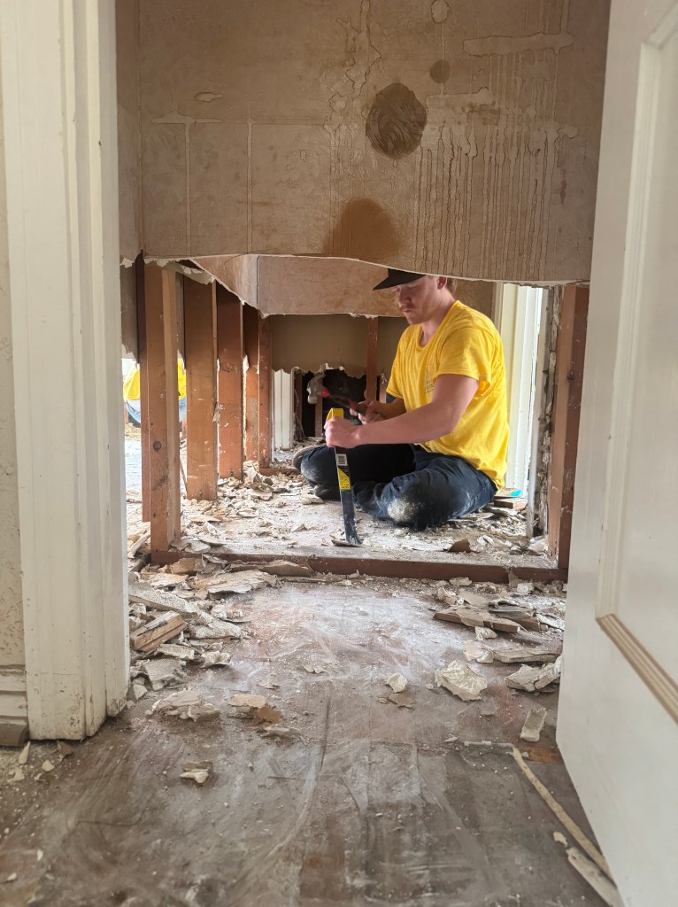 Heavy rains caused severe flooding in wide swaths of San Angelo. Muddy water flooded homes, damaging walls, floors, and furniture. Over 175 church members, with half from Abilene, drove large trucks and towed trailer to help people clean out their damaged homes.