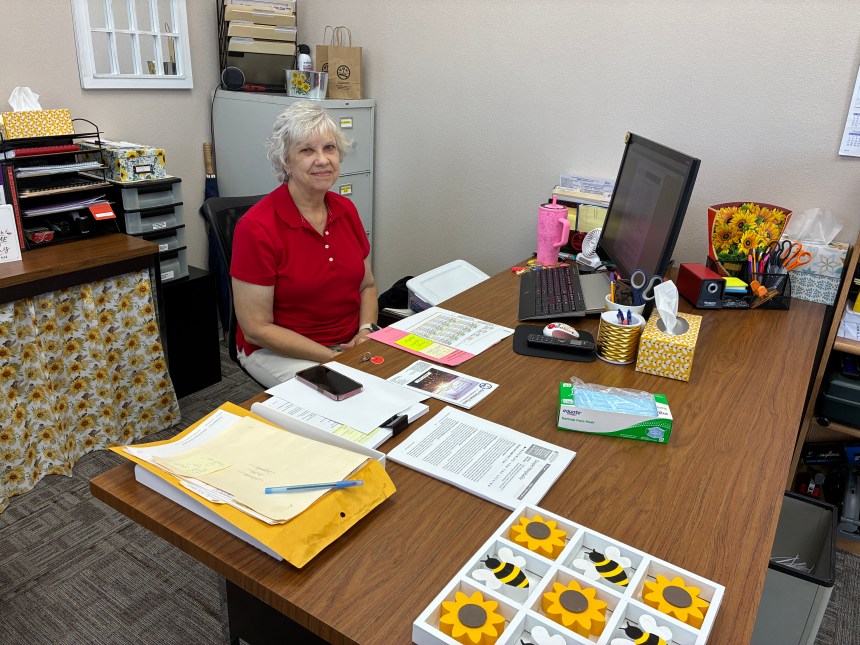 Brenda Harris, office administrator at First Christian Church, works in her new office in annex, which will be Dedicated Aug. 10. Photos by Loretta Fulton