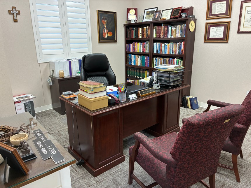 Pastor Greg Morris’s office in the new addition to First Christian Church.
