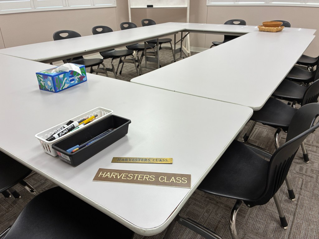 First Christian Church photos, left to right youth room, Harvesters classroom, Rev. Greg Morris