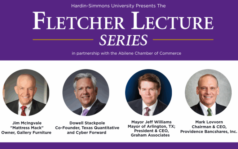 Hosted in partnership with the Abilene Chamber of Commerce, the Fletcher Lecture Series brings nationally respected voices to West Texas to explore the intersections of business, science, faith, and public life. Named in honor of former HSU President Jesse C. Fletcher, the series reflects his legacy of academic excellence, Christian leadership, and civic responsibility.