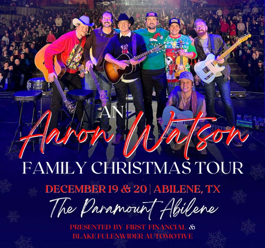 “An Aaron Watson Family Christmas” will be presented on Friday and Saturday, Dec. 19-20. Doors will open at 6 p.m. for the 7 p.m. performance. Tickets are priced from $31.90 to $53.90. Click here for tickets.
