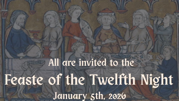 “Come one, Come all” to the Feaste of the Twelfth Night, with a worship service, singing, and dinner.