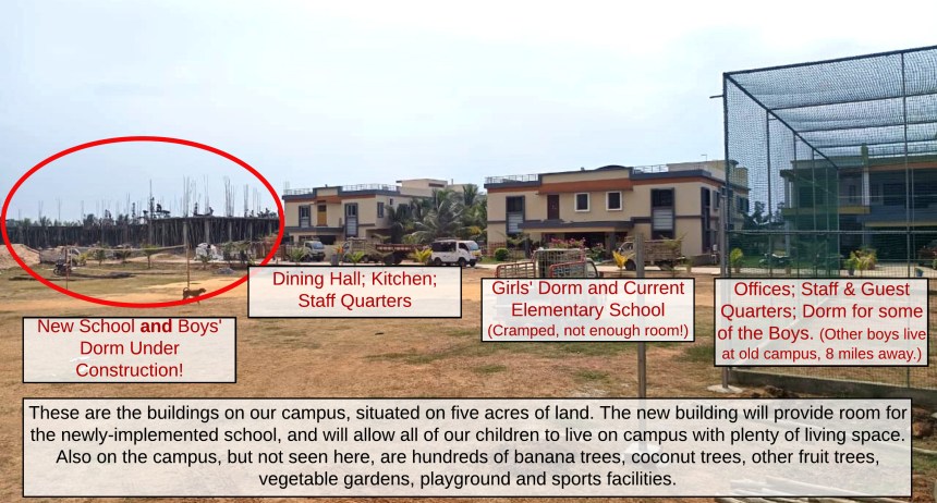 Currently, an elementary school is located on the bottom floor of the girls’ dormitory in the orphanage. Boys live in a separate dormitory on the grounds or at the original orphanage campus in Tenali and are bused to the school. When the new school opens, it will serve a dual purpose.