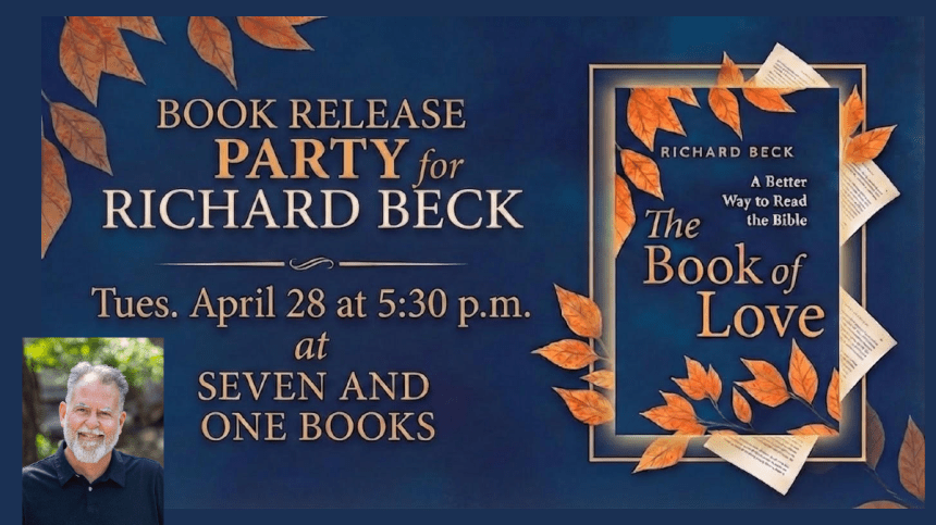 A book release party for Richard Beck’s new book will be held at Seven and One Books, 1138 N. 2nd St., at 5:30 p.m. Tuesday, April 28. The book is titledThe Book of Love: A Better Way to Read the Bible.